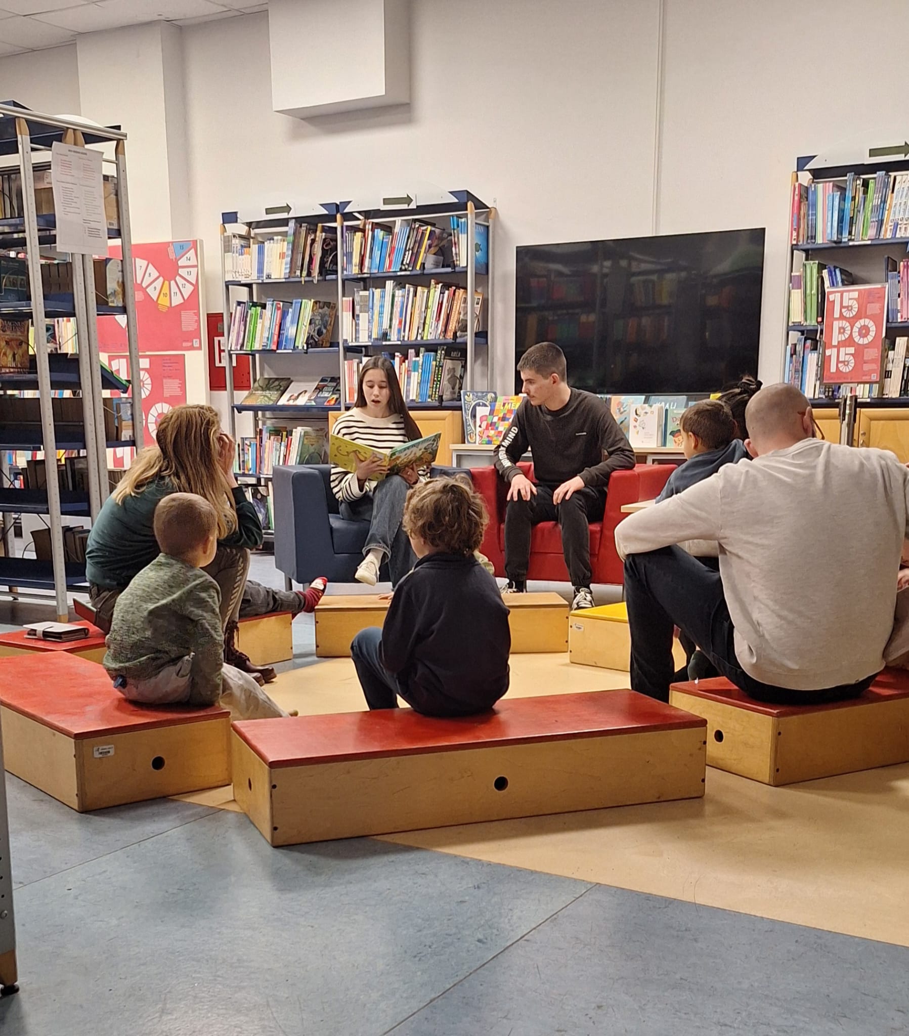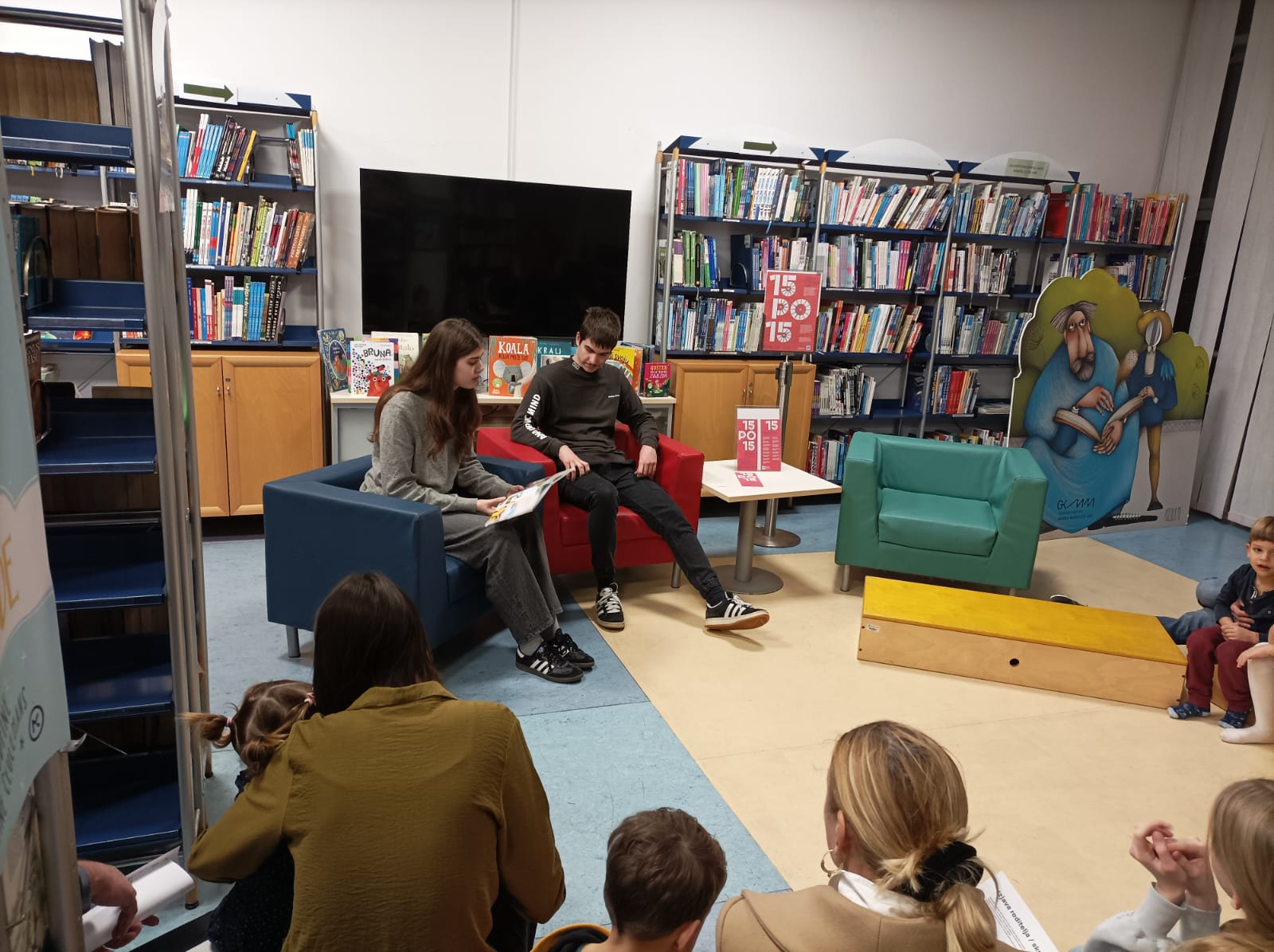 U Gradskoj knjižnici „Marko Marulić“ Split u sklopu izazova 15 po 15 čitali su učeniciBepo Pensa (2.b), Iva Brkić (3.a) i Lara Harašić (3.a). Izazov 15 po 15 je dio programa Rođeni za čitanje kojeg provodi Ministarstvo kulture i medija. Cilj programa je stvaranje čitalačkih navika kod djece. Učenici su za tu prigodu čitali slikovnice pod nazivom Emina posla i Superglista, a slušala ih je grupa od petnaestak ljudi (djeca različitog uzrasta i njihovi roditelji). Navedena aktivnost organizirala se kako bi dodatno obogatila projekt Tulum s(l)ova koji se od 2011. godine provodi u školskim knjižnicama u Hrvatskoj, a cilj mu je poticanje čitanja naglas u lokalnoj zajednici. Učenike su pratile školska knjižničarka Marijana Bilan i školska psihologinja Željka Friganović Jerončić.